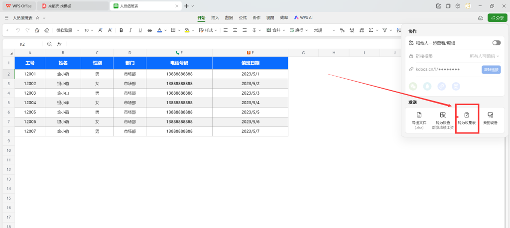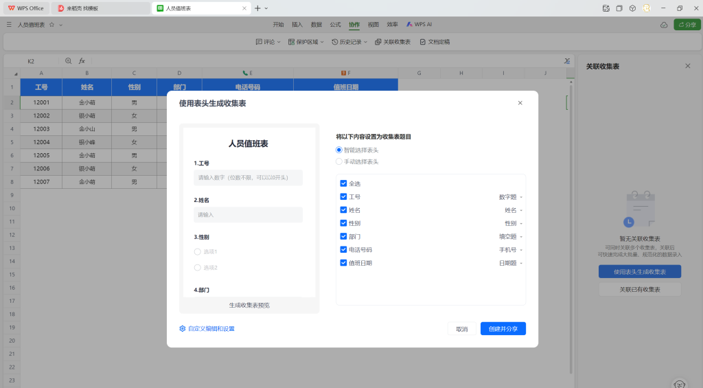 此处我多插一嘴,这个智能表格还有收集表功能,可以收集信息,具体使用大家自行探索!