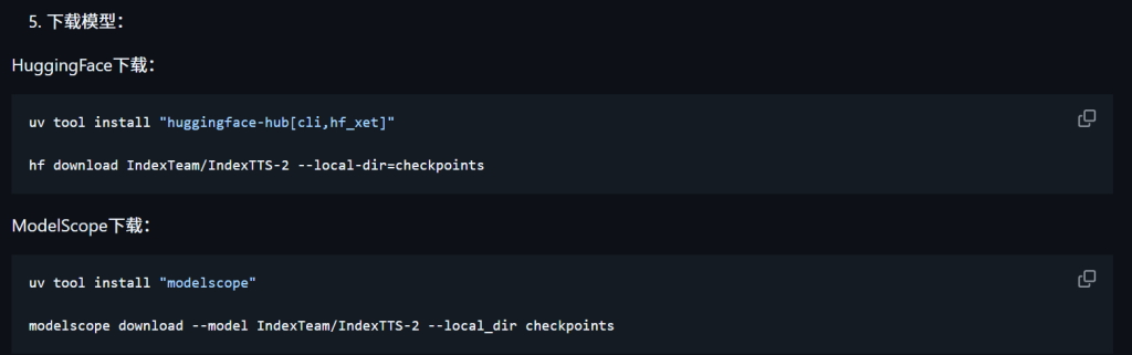 uv run hf download IndexTeam/IndexTTS-2 --local-dir=checkpoints